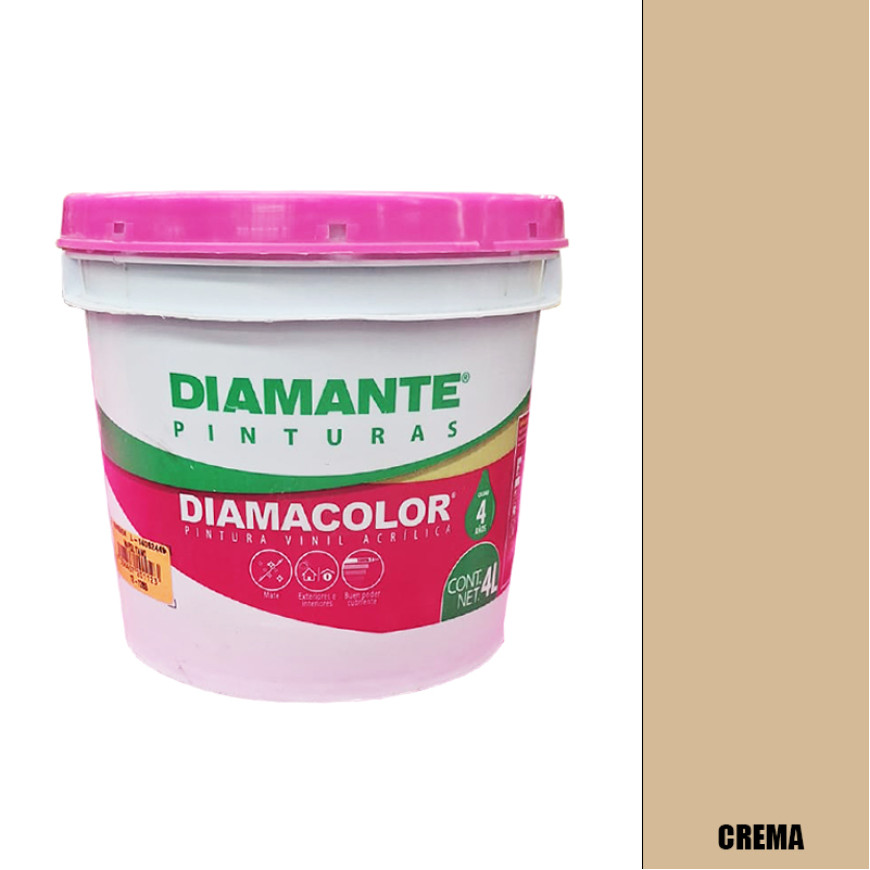 PINTURA VINILICA DIAMACOLOR CREMA 4 LITROS INTERIOR Y EXTERIOR LAVABLE.